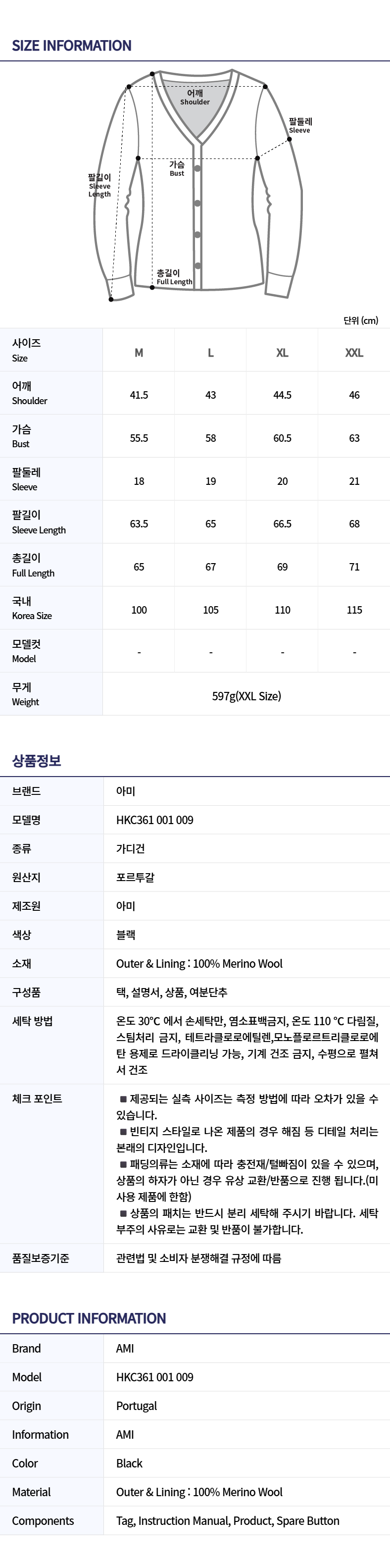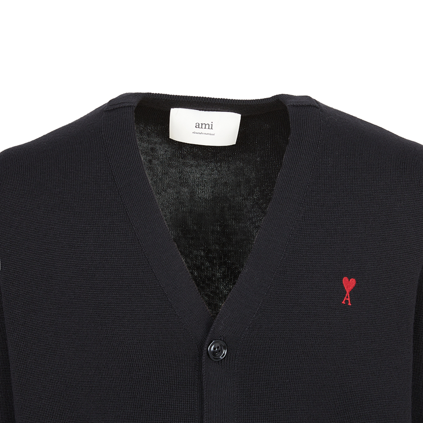 [15% 쿠폰] 아미 스몰 하트 로고 울 가디건 블랙
