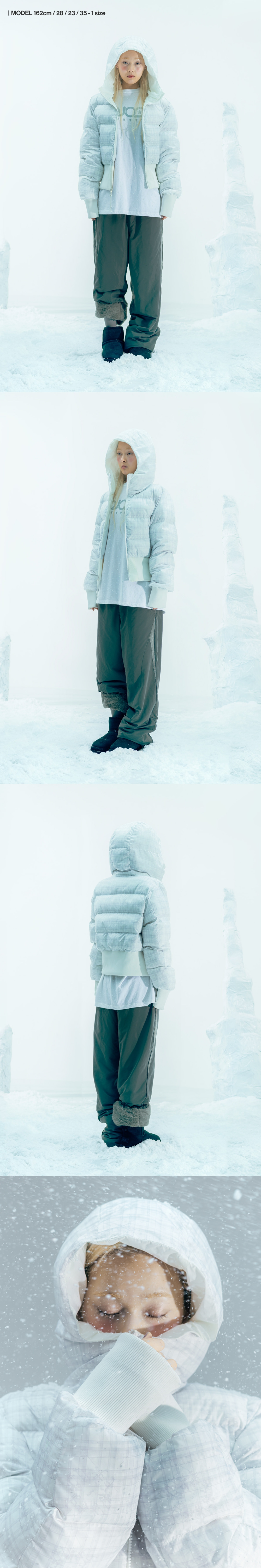 양방향 착용으로 다양한 스타일링이 가능한 크롭 패디드 자켓 | 크롭 핏 | 가벼움과 보온성에 탁월한 친환경 충전재 SORONA®-aura 사용 | 소매 핑거홀 디테일 | 전면에 YKK 1-way 양면지퍼 마감 A면 | 전면 OJOS 로고 자수 | 가슴 포켓 YKK CONCEAL® 지퍼 마감 B면 | OJOS 패턴 디테일 | 퀼팅라인 마감상세설명 참조