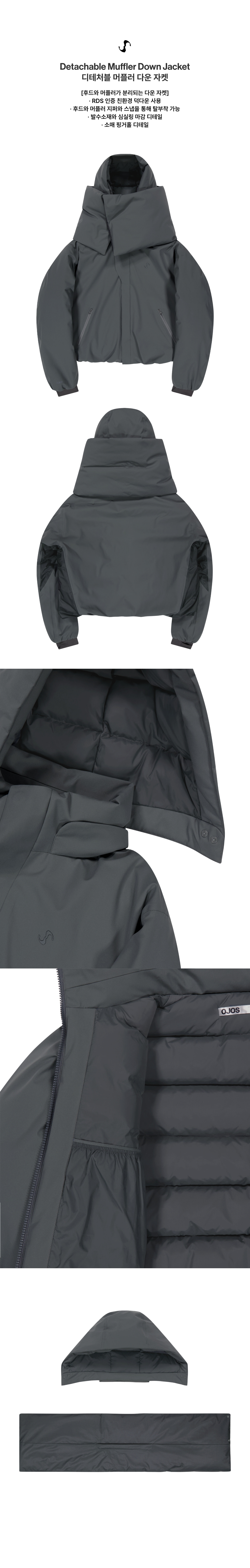 후드와 머플러가 분리되는 다운 자켓 | 오버핏 | 전면 심볼 로고 전사 | 소매 시즌 넘버 전사 | 발수소재와 심실링 마감 디테일 | RDS 인증 친환경 덕다운 사용 | 커브라인의 버튼 여밈 디테일 | 밑단과 소매 퍼프 마감 | 소매 핑거홀 디테일 | 후드와 머플러 지퍼와 스냅을 통해 탈부착 가능 | 전면에 2-way 방수지퍼 및 OJOS 풀러 마감상세설명 참조
