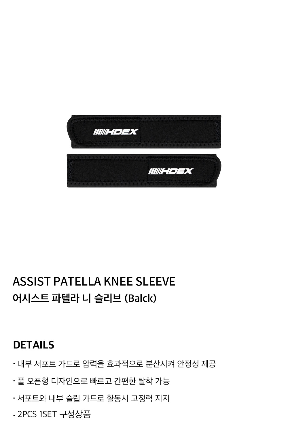 에이치덱스 어시스트 파텔라 니 슬리브 블랙