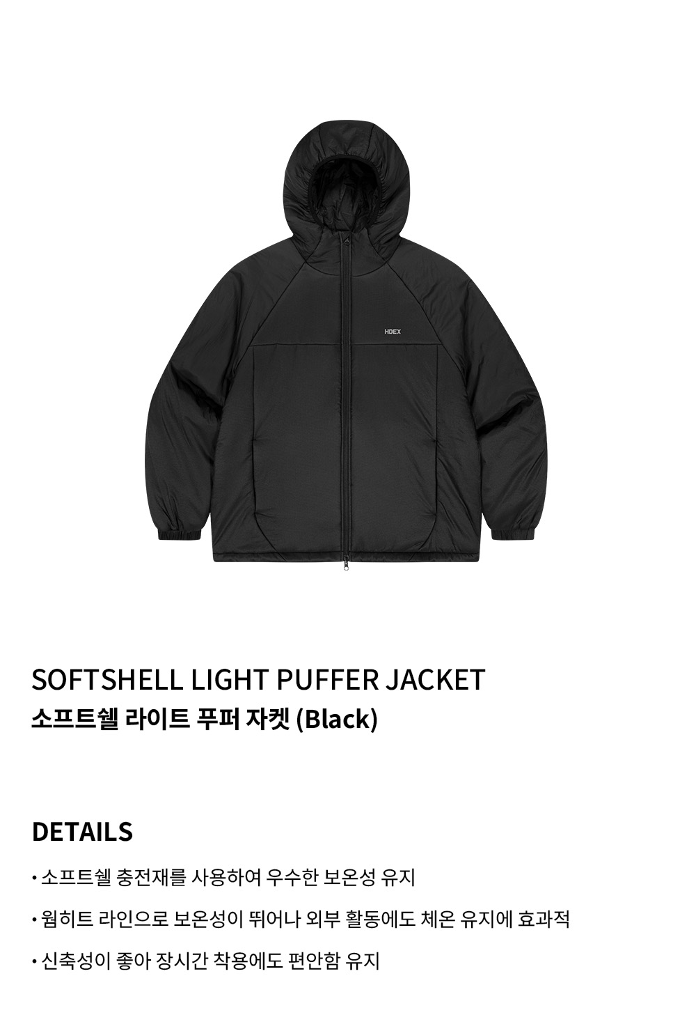 에이치덱스 소프트쉘 라이트 푸퍼 자켓 블랙