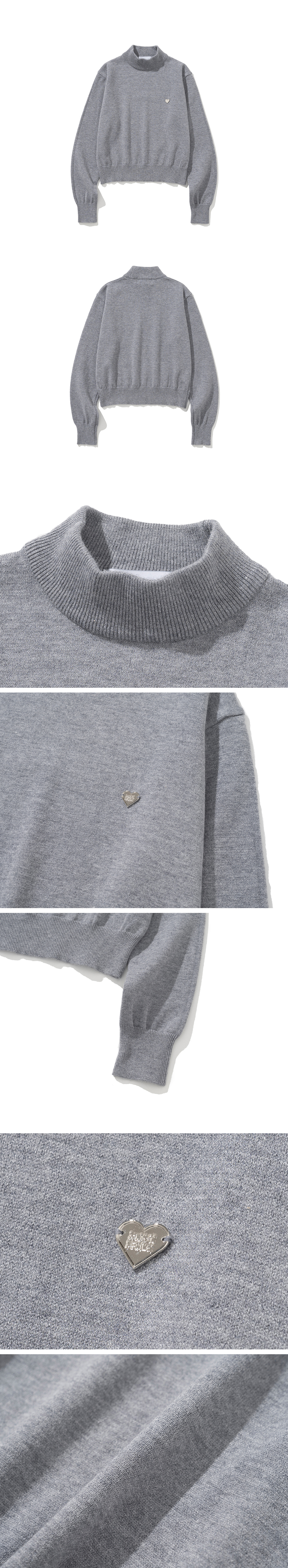 니티드 베이직 에센셜 워셔블 하프 폴라 니트 우먼 그레이