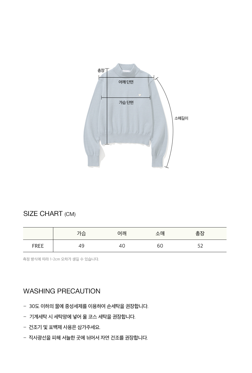 측정 방법에 따라 사이즈에 일부 오차가 있을 수 있습니다.