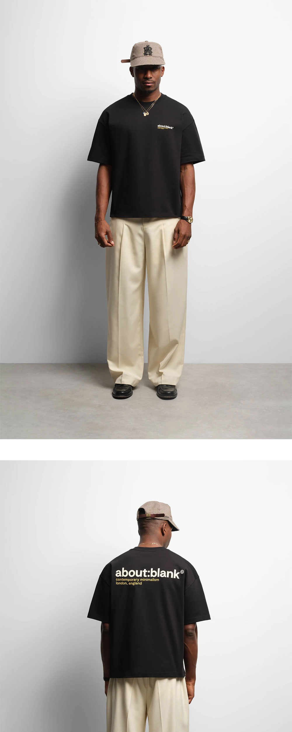어바웃 블랭크 콜렉션 티셔츠 블랙 화이트 옐로우입니다. - 340gsm 헤비웨이트 코튼 져지 소재 티셔츠 - 드롭 숄더 - 크롭 기장의 박시 실루엣 - 전면·후면 입체감 있는 로고 프린팅
