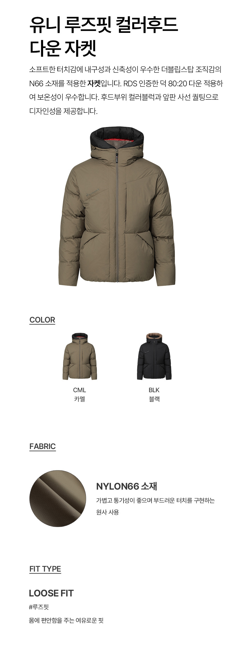 르꼬끄 스포르티브 유니 루즈핏 컬러후드 다운 자켓 - 블랙 QQ423EDJN7