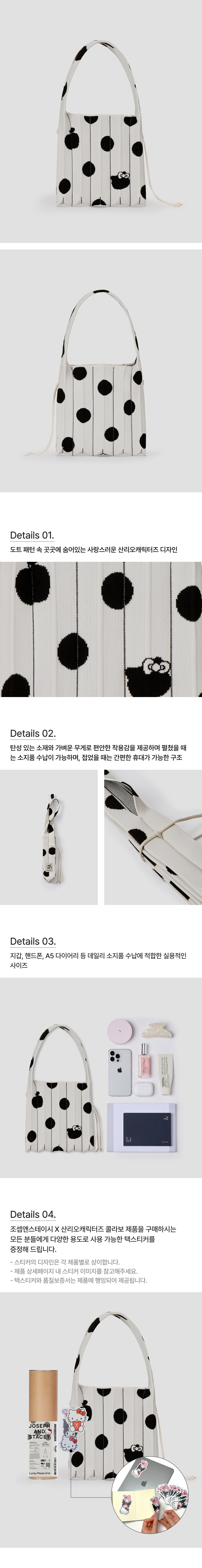 조셉앤스테이시 럭키 플리츠 니트 스몰 도트 헬로키티 크림 화이트
