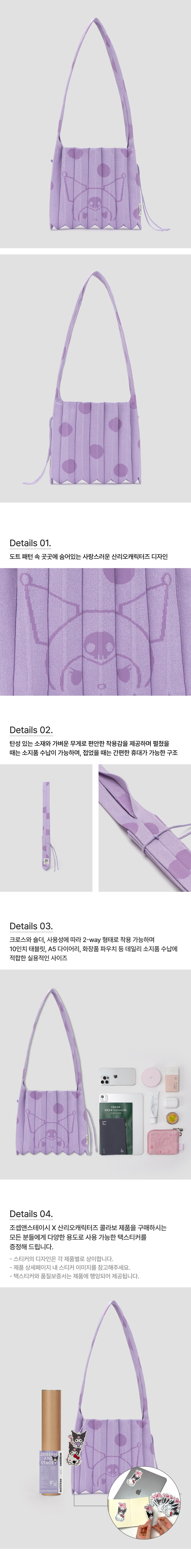 조셉앤스테이시 럭키 플리츠 니트 크로스바디 미디움 도트 쿠로미 모브 미스트