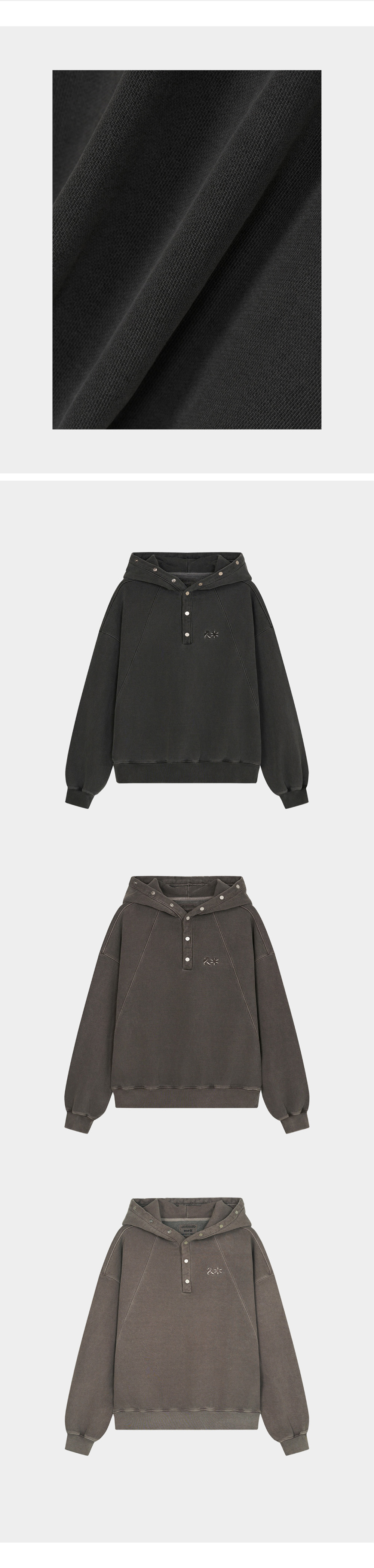 리오므 피그먼트 헤비스웨트 버튼 후디 차콜