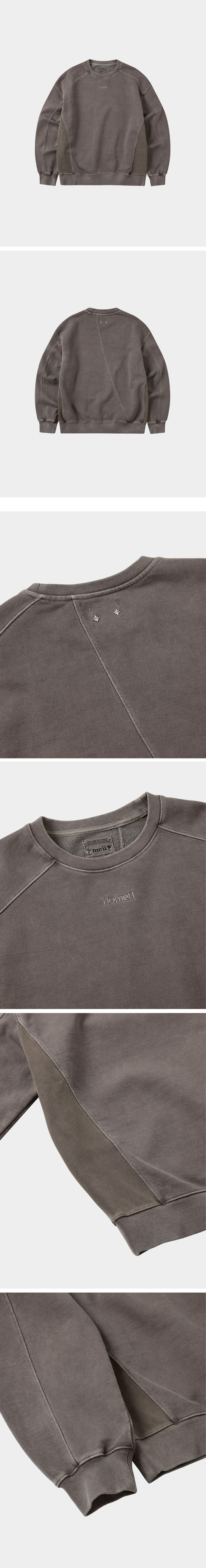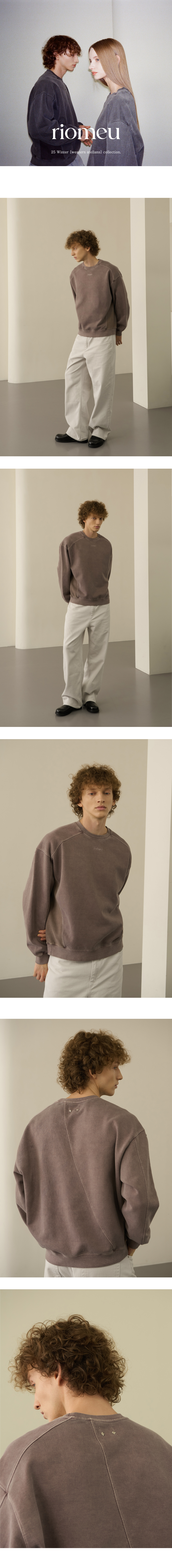 리오므 언발란스 절개 피그먼트 헤비 스웻셔츠 브라운