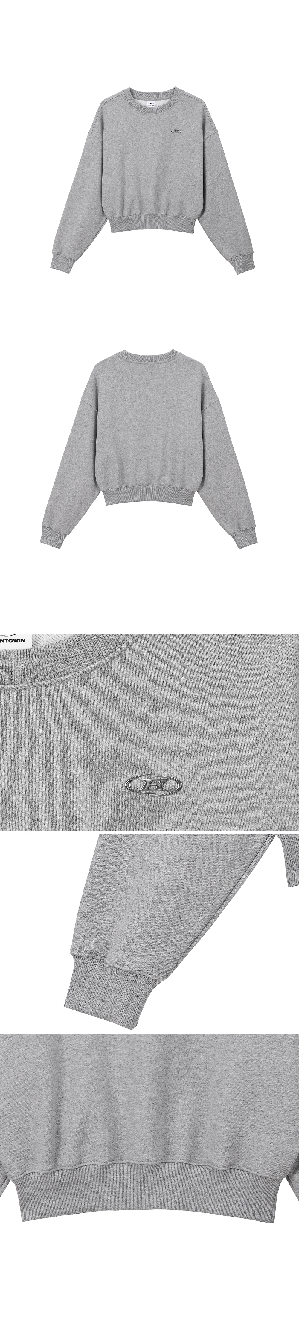 본투윈 우먼 실버 B 크롭 스웻셔츠 멜란지그레이