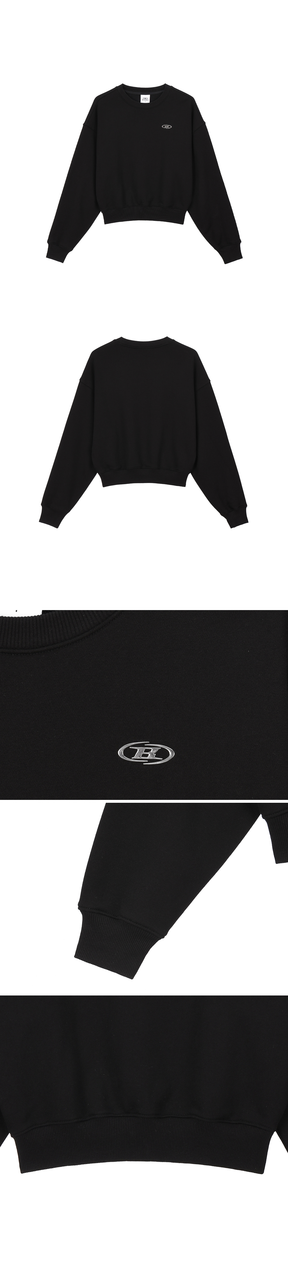 본투윈 우먼 실버 B 크롭 스웻셔츠 블랙