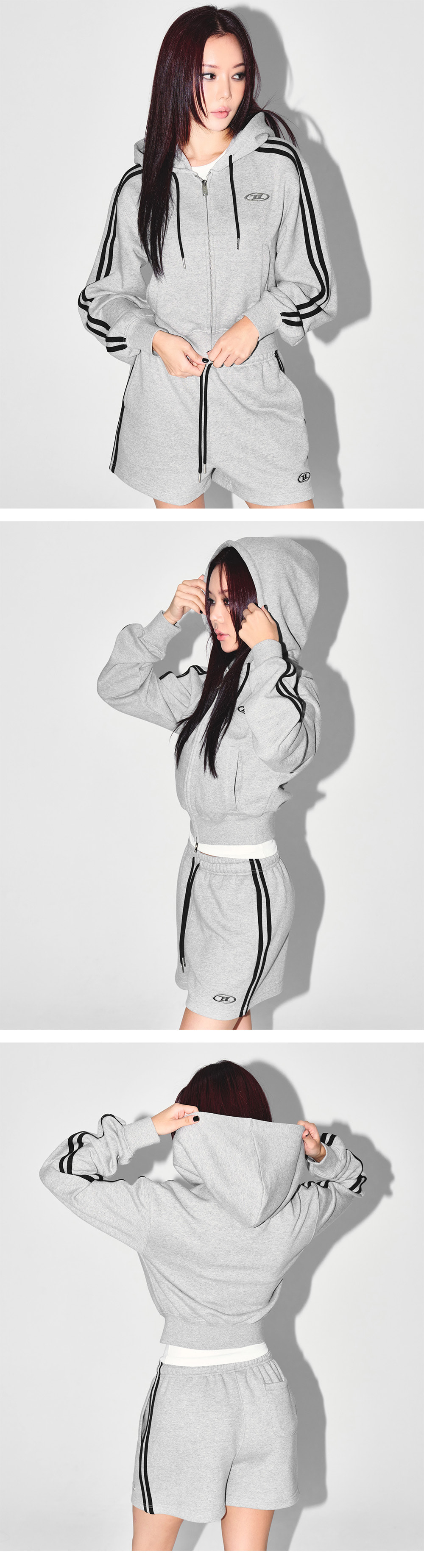 BORN TO WIN W Chrome B Track Line Crop Hoodie Zip-Up Melange Grey