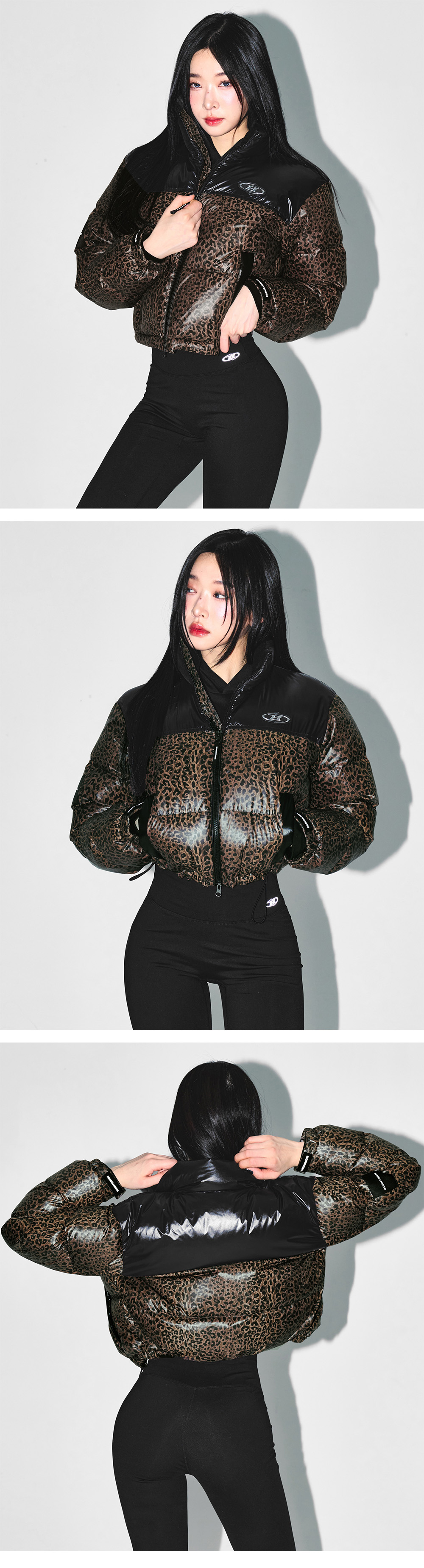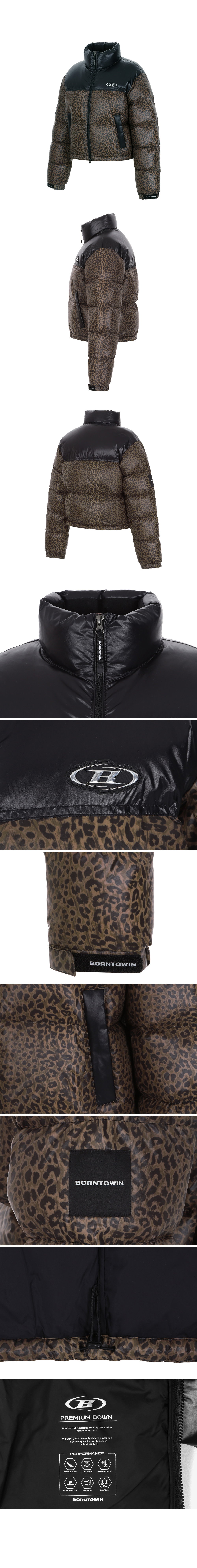 본투윈 우먼 실버 B 글로시 크롭 푸퍼다운 레오파드