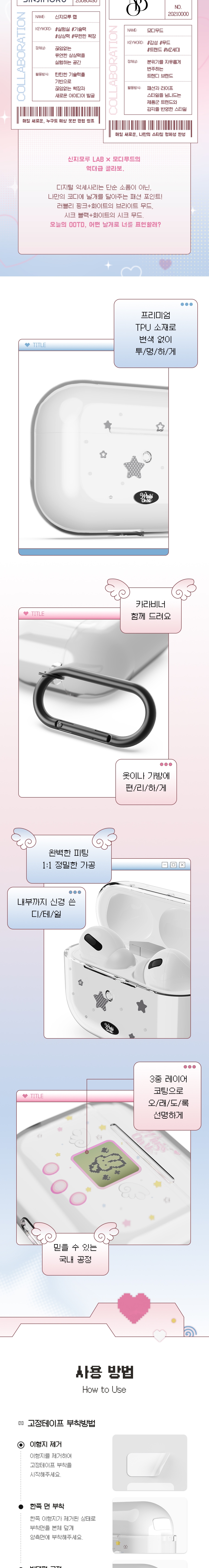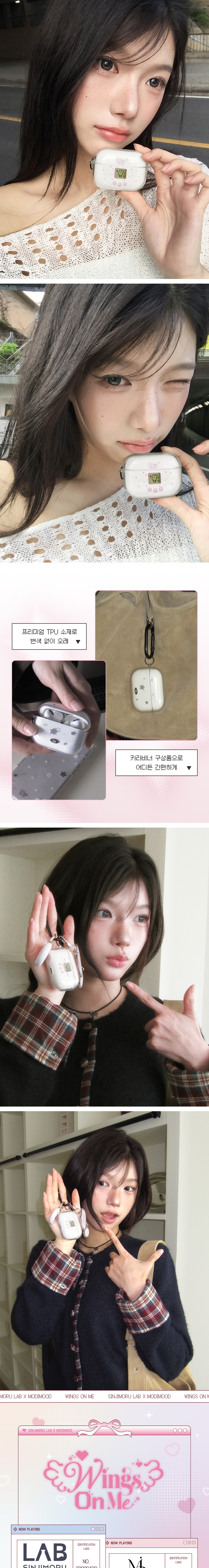 신지모루 x 모디무드 에어팟 투명 케이스 감성 엔젤 스윗 카라비너 키링 다마고치