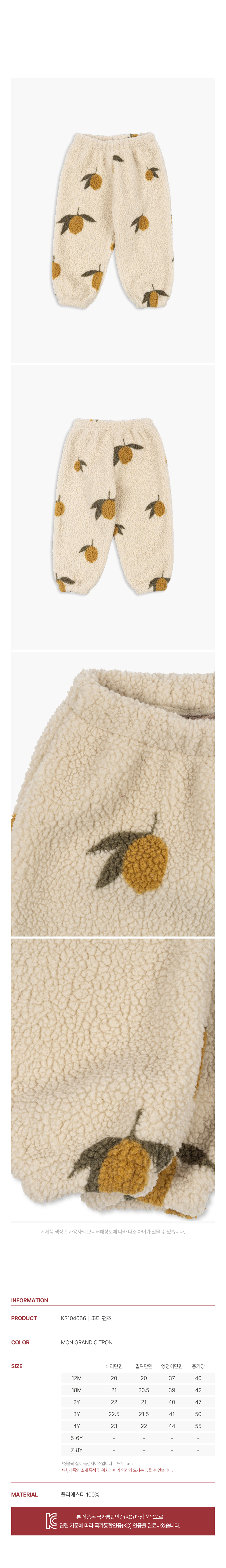 국내공식 콩제슬래드 조디 팬츠 레몬