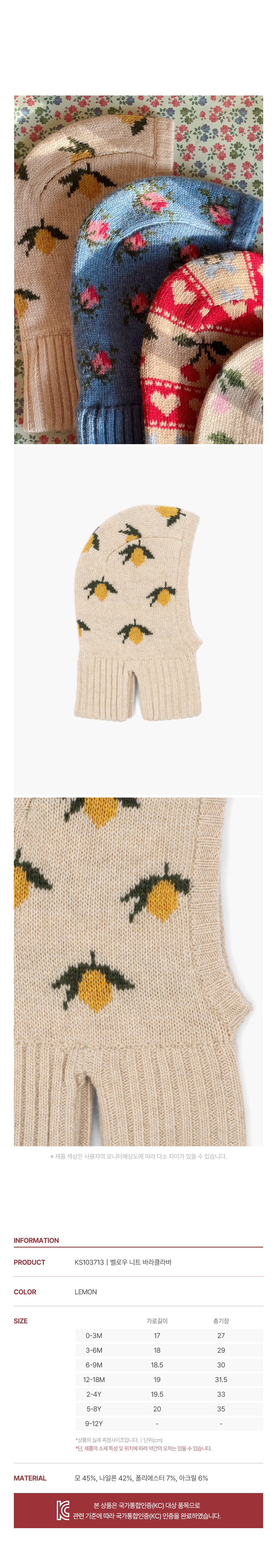 국내공식 콩제슬래드 벨로우 니트 바라클라바 레몬