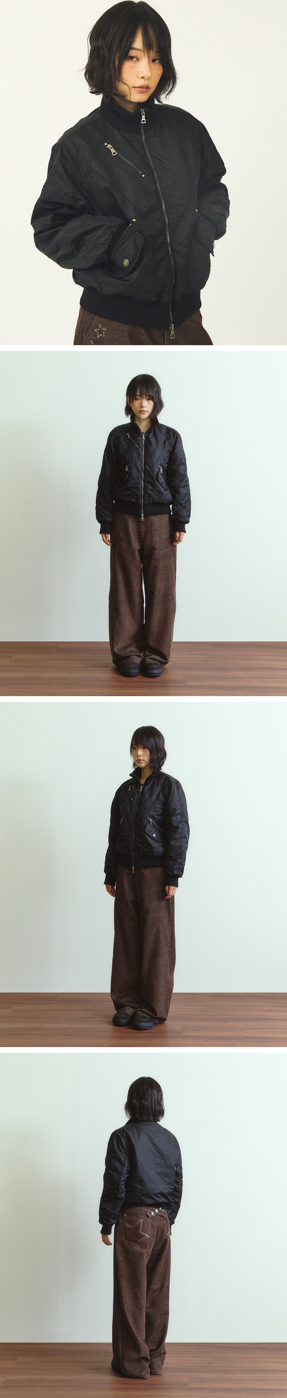 단델 크롭 스터디드 MA-1 재킷 블랙