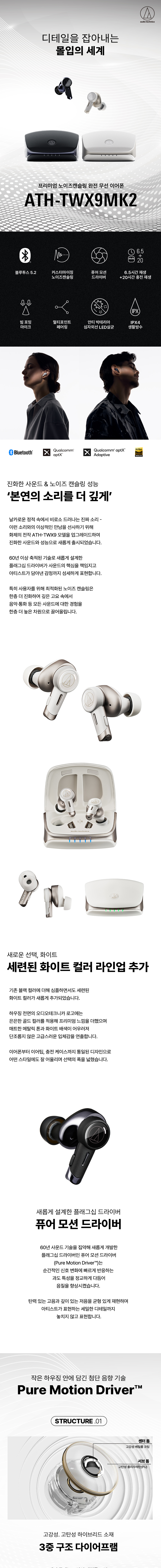 오디오테크니카 공식수입원 ATH-TWX9MK2 노이즈캔슬링 무선 이어폰 블랙