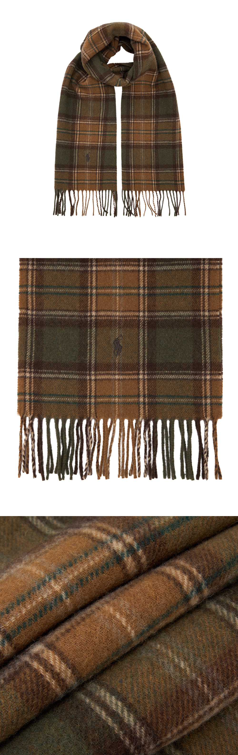 < KREAM은 랄프로렌 코리아 공식 파트너사로 모든 상품은 랄프로렌 코리아(유)에서 공급받은 정식 수입 제품입니다 > 폴로 랄프 로렌 플래드 프린지 울 스카프 브라운 멀티입니다. - 이탈리아산 울 스카프 - 생기 넘치는 플레드 모티브 - 시그니처 자수 포니