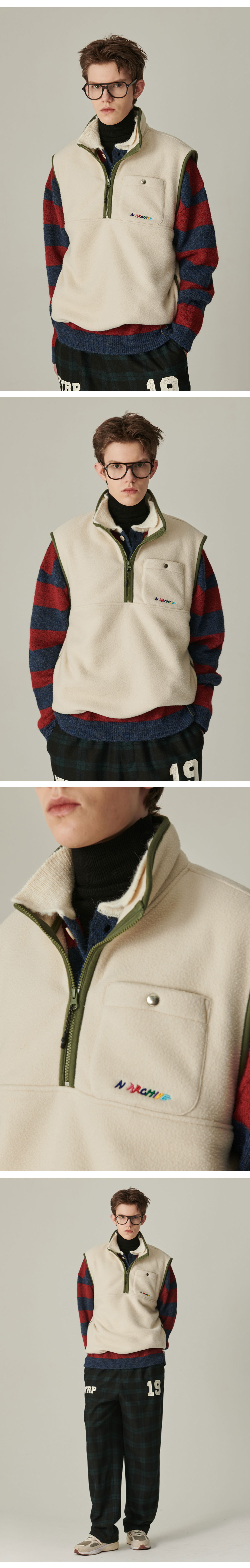 엔 아카이브 레트로 팝 디테일 하프 집업 베스트 아이보리