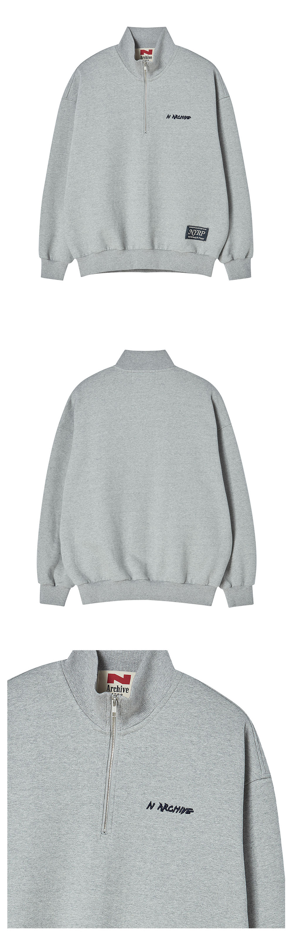 ㆍ컬렉션 라인의 묵직한 중량이 매력적인 하프 집업 티셔츠 ㆍ헤비한 중량의 기모 원단을 사용 ㆍ덤블워싱&텐타 가공으로 세탁 후 변형 최소화 ㆍ세미오버 핏으로 자연스러운 실루엣 연출ㆍ간절기부터 겨울까지 활용도 높은 아이템 ㆍ고 퀄리티의 볼륨 디테일의 로고 자수와 핸드 메이드 제작의 라벨로 포인트 유니섹스 상품으로 제작 ㆍ여성분들은 M사이즈 착용 권장