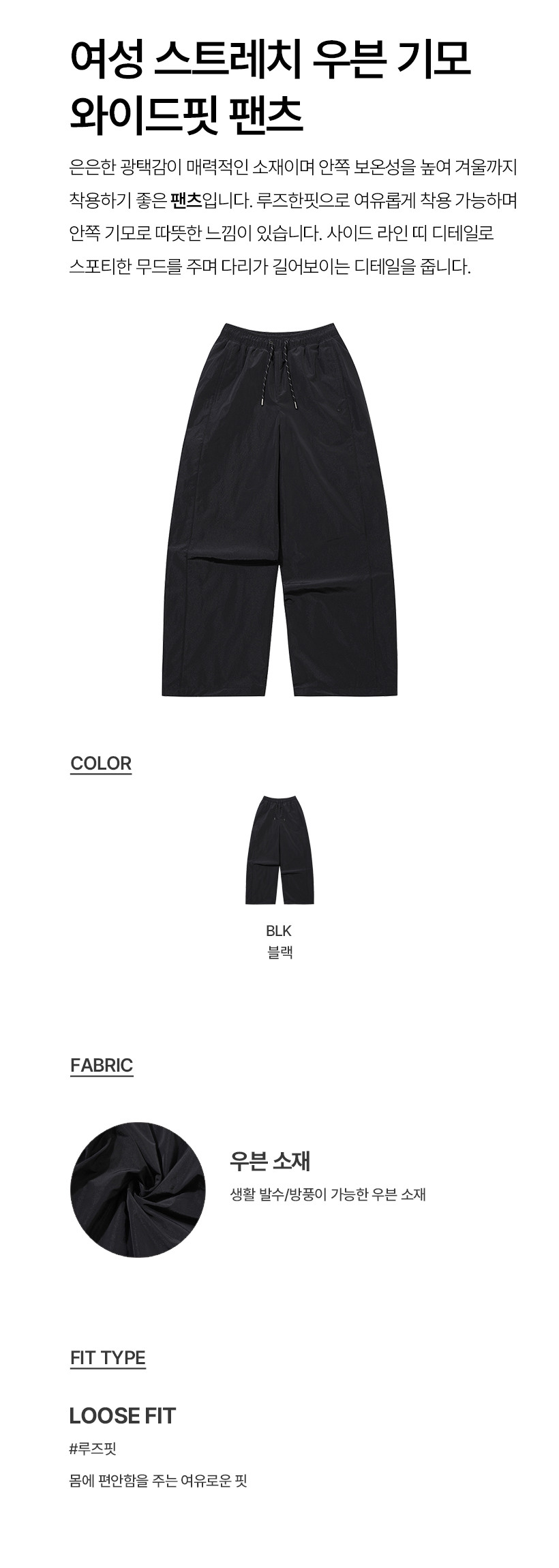 르꼬끄 스포르티브 여성 스트레치 우븐 기모 와이드핏 팬츠 - 블랙 QQ422OPTO1