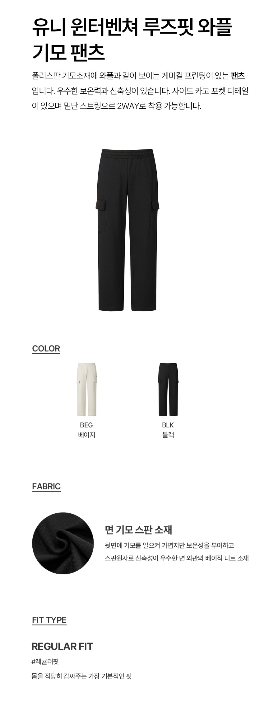 르꼬끄 스포르티브 유니 윈터벤쳐 루즈핏 와플 기모 팬츠 - 블랙 QQ413EFPN1
