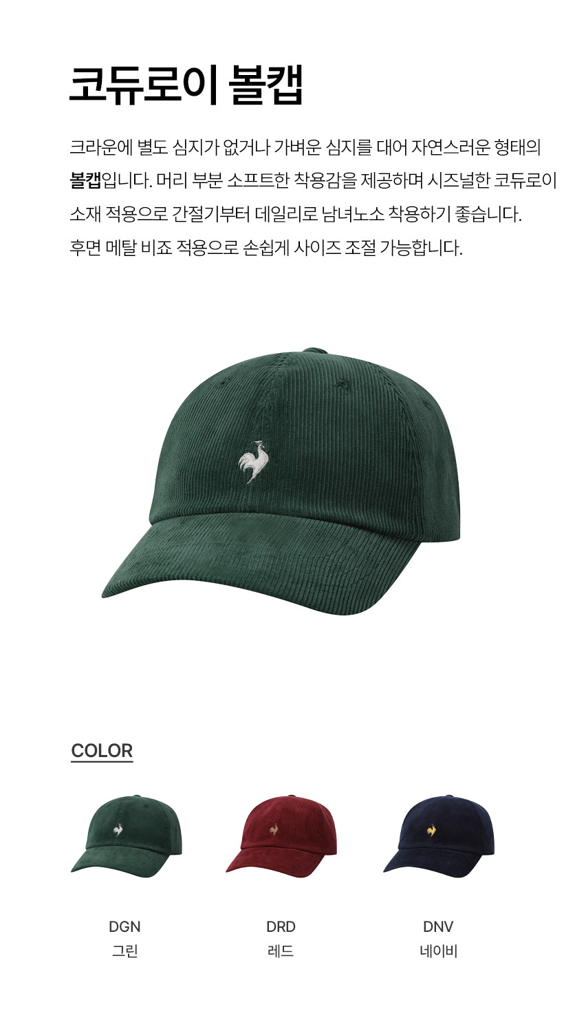 르꼬끄 스포르티브 코듀로이 볼캡 - 레드(QQ323ACP92)