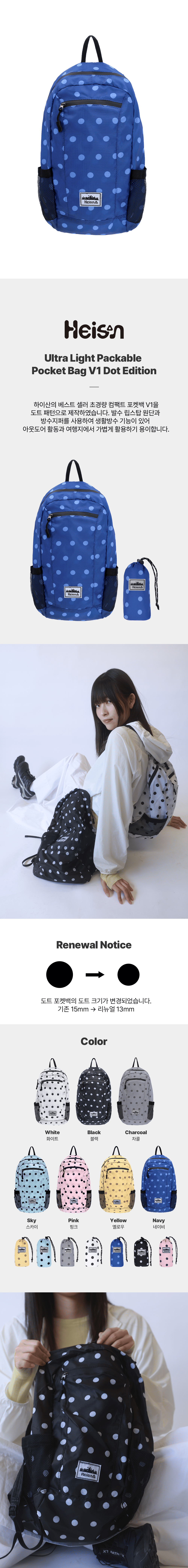 하이산 초경량 컴팩트 포켓백 v1 도트 네이비