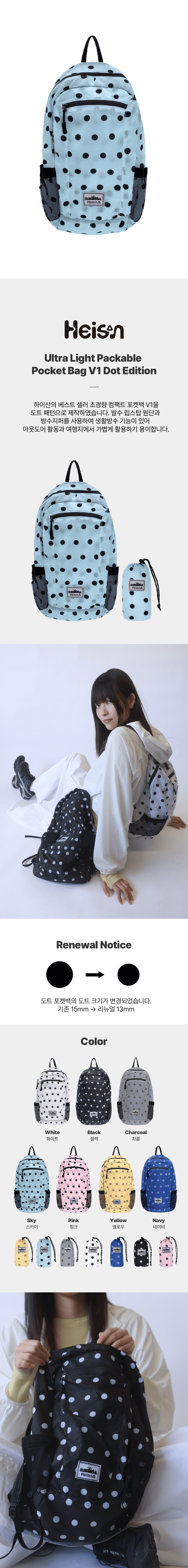 하이산 초경량 컴팩트 포켓백 v1 도트 스카이