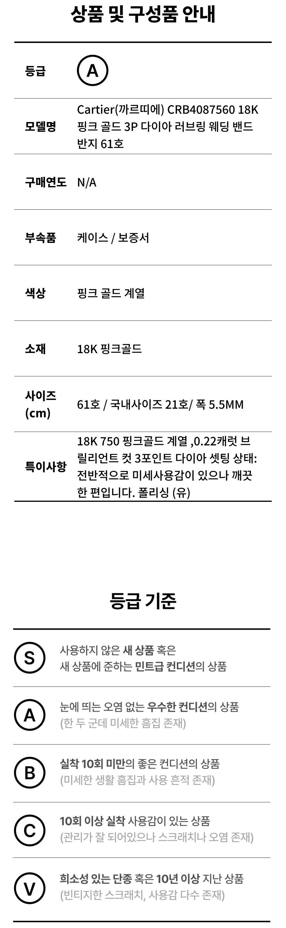 까르띠에 CRB4087560 18K 핑크 골드 3P 다이아 러브링 웨딩 밴드 반지 61호