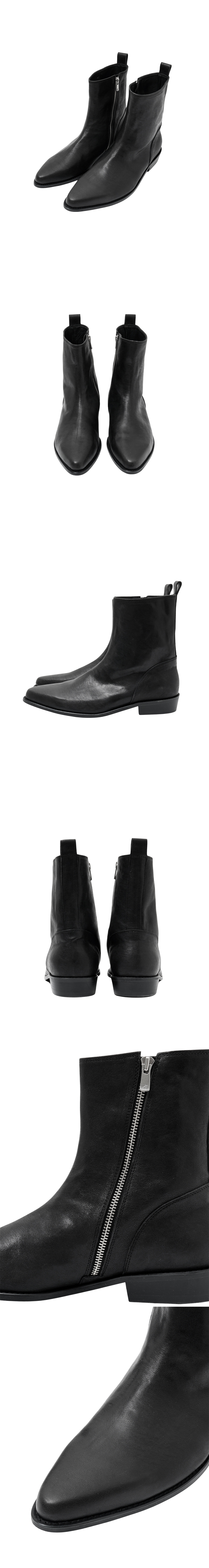 ***주문 제작 상품으로 주문일 기준으로 10-14일 소요됩니다. 교환/환불 불가능*** 매끄럽게 떨어지는 라스트와 미니멀한 실루엣의 레더 앵클 부츠입니다. 은은한 광택의 스무스 레더를 사용해 견고하면서도 세련된 질감을 완성했으며, 내측의 사이드 지퍼로 간결하게 착용할 수 있습니다. -DETAIL- 슬림 라스트 실루엣 사이드 지퍼 여밈 백탭 디테일