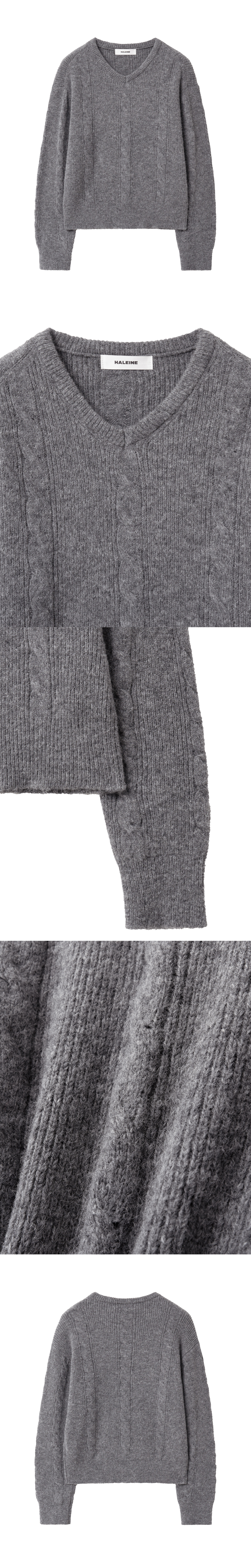 알렌느 브러시드 알파카 크롭 브이넥 케이블 니트 차콜