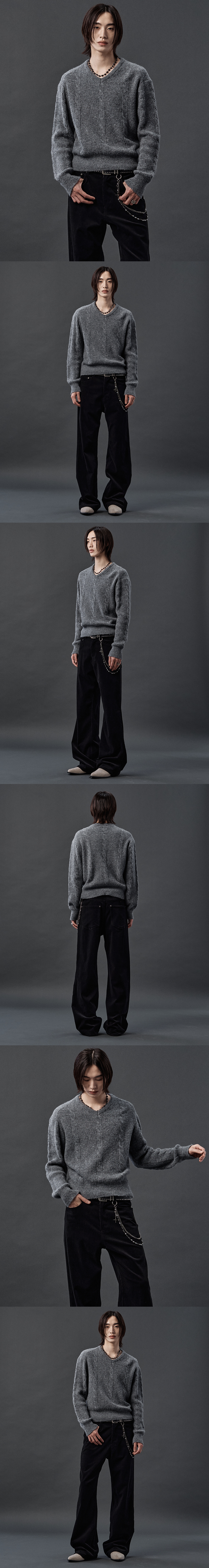 베이비 알파카와 메리노 울 블렌드 원사로 짜여진 크롭 브이넥 니트입니다. 브러시 원사의 자연스러운 헤어감과 멜란지 질감이 어우러져 입체적인 컬러톤을 형성합니다. 케이블 짜임을 더해 클래식한 포인트를 주었으며, 레귤러 핏의 크롭 실루엣으로 다양한 겨울 아우터와 조화롭게 매치됩니다. -DETAIL- 베이비 알파카 블렌드 원사 멜란지 텍스처 원사 크롭 실루엣 레귤러 핏 브이넥 디자인 케이블 짜임