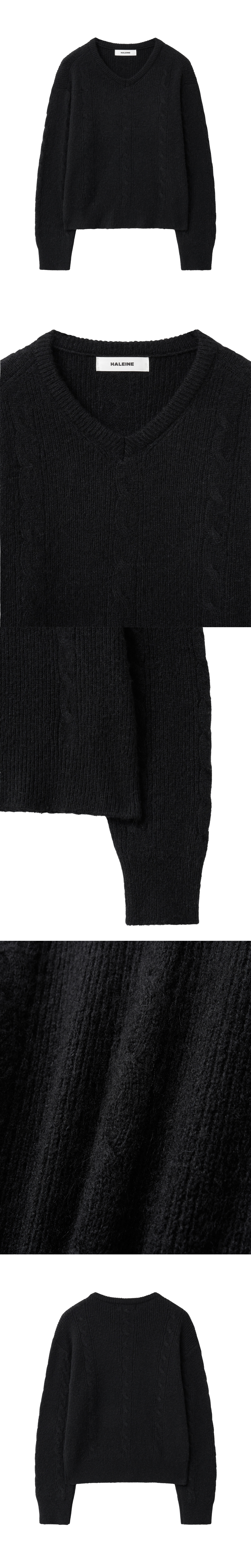 Haleine Brushed Alpaca Cropped V-Neck Cable Knit BlacK(WT408)