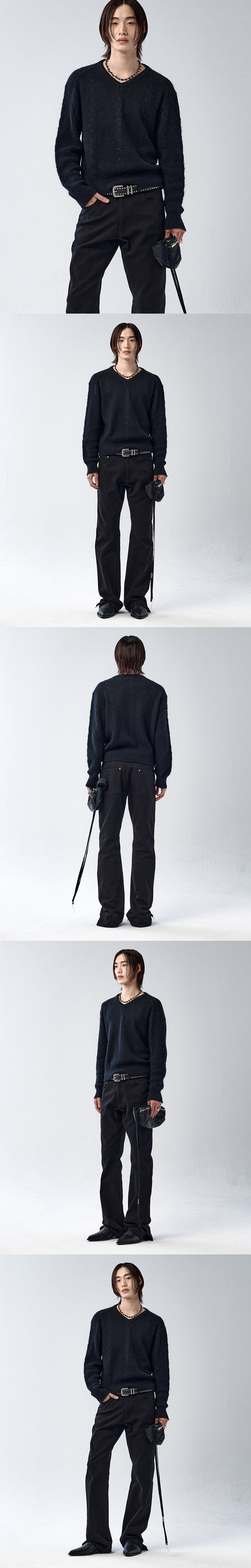 베이비 알파카와 메리노 울 블렌드 원사로 짜여진 크롭 브이넥 니트입니다. 브러시 원사의 자연스러운 헤어감이 부드러운 질감을 형성합니다. 케이블 짜임을 더해 클래식한 포인트를 주었으며, 레귤러 핏의 크롭 실루엣으로 다양한 겨울 아우터와 조화롭게 매치됩니다. -DETAIL- 베이비 알파카 블렌드 원사 크롭 실루엣 레귤러 핏 브이넥 디자인 케이블 짜임