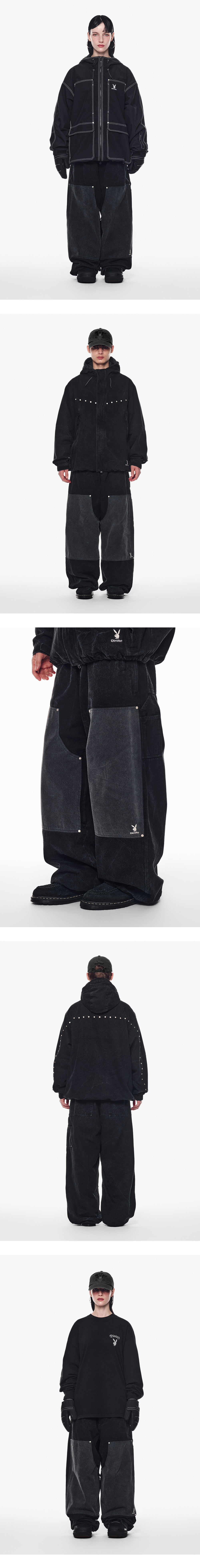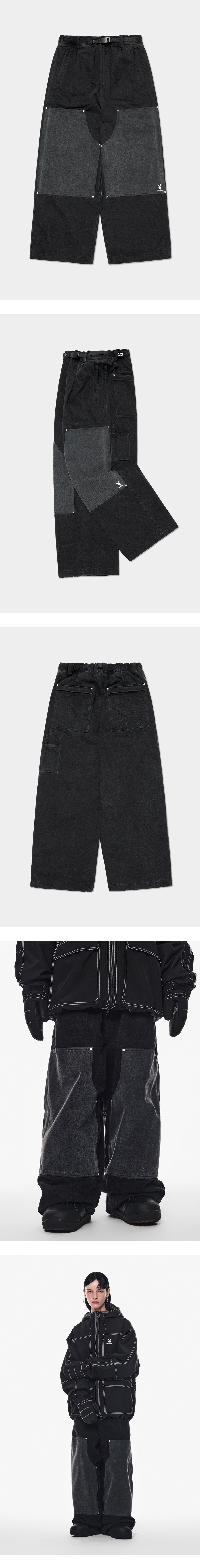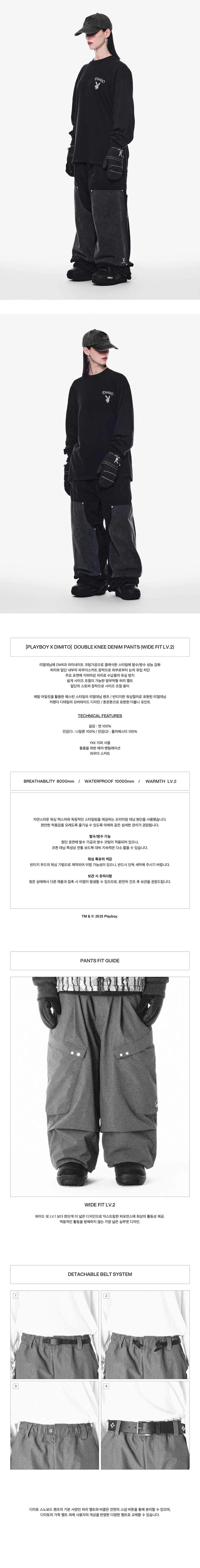 [디미토 X 플레이보이] 더블 니 데님 팬츠 와이드 핏 레벨 2 워시드 블랙
