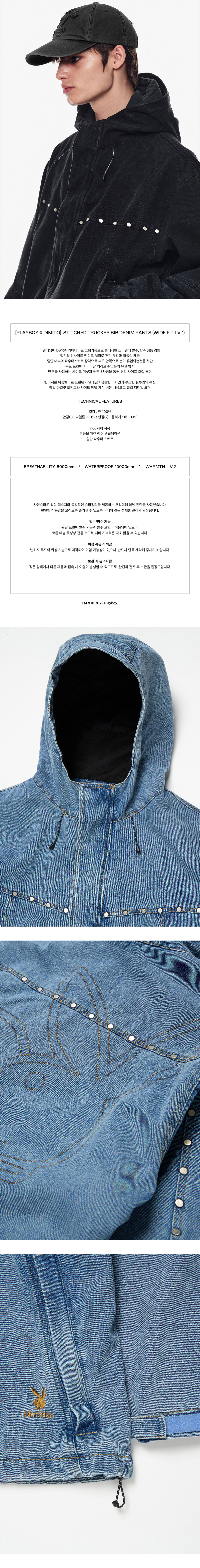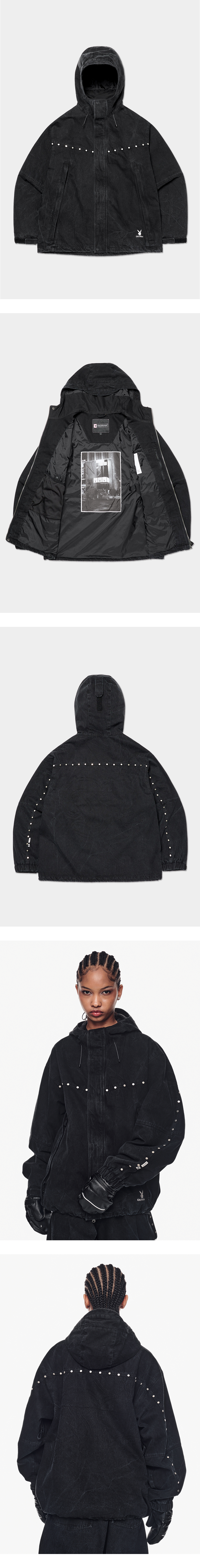 [디미토 X 플레이보이] 스터드 웨스턴 데님 자켓 워시드 블랙