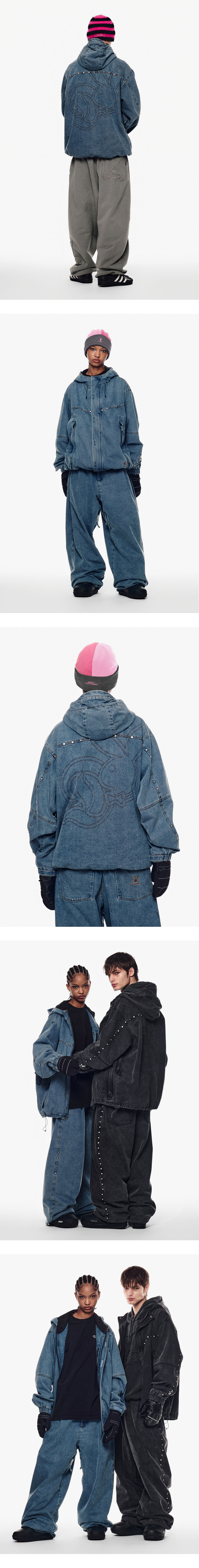 [디미토 X 플레이보이] 스터드 웨스턴 데님 자켓 워시드 블루