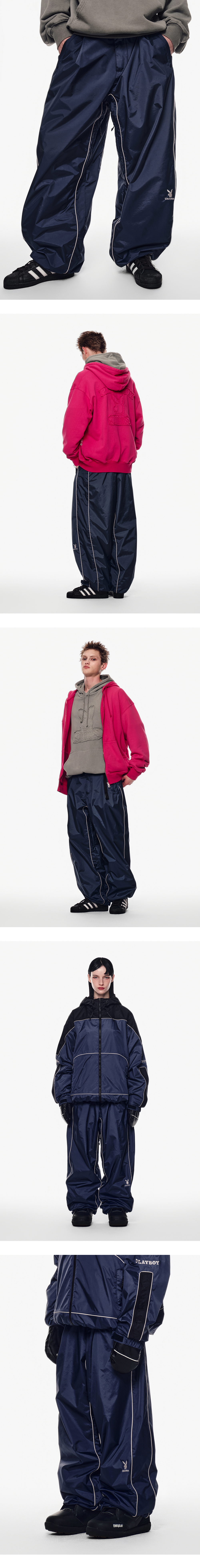 [디미토 X 플레이보이] 파이핑 밴디드 팬츠 와이드 핏 레벨 2 클라우디 블루