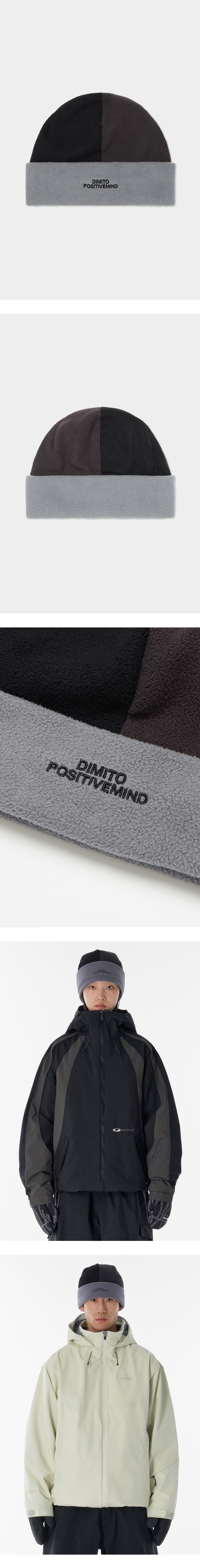 디미토 컬러 블락 플리스 비니 그레이