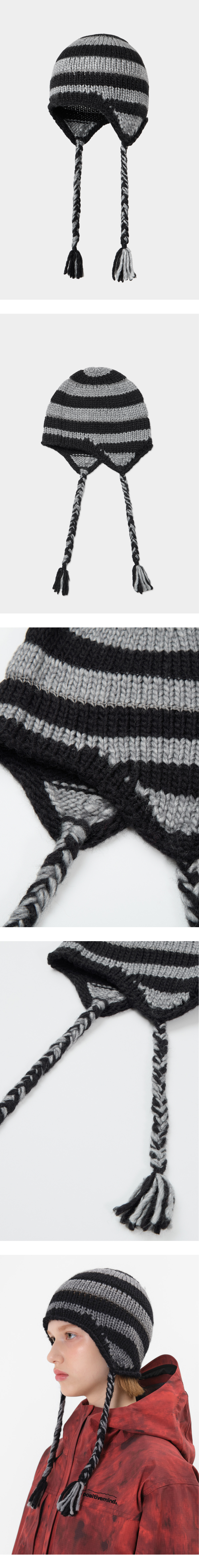 디미토 크로켓 스트라이프 이어 플랩 비니 블랙