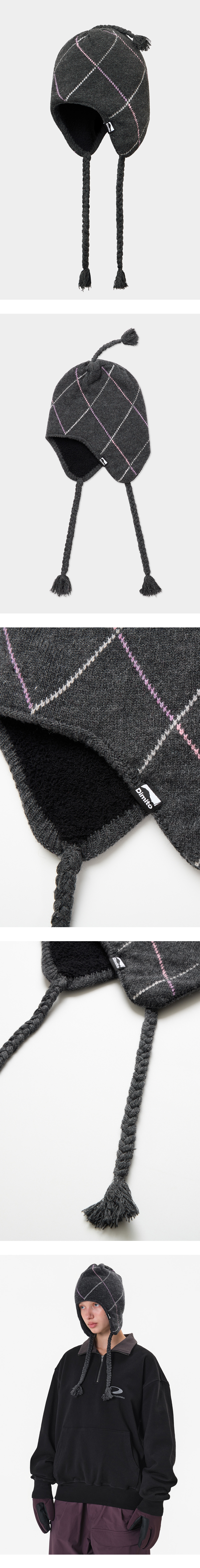 디미토 라인드 아가일 이어 플랩 비니 딥 그레이