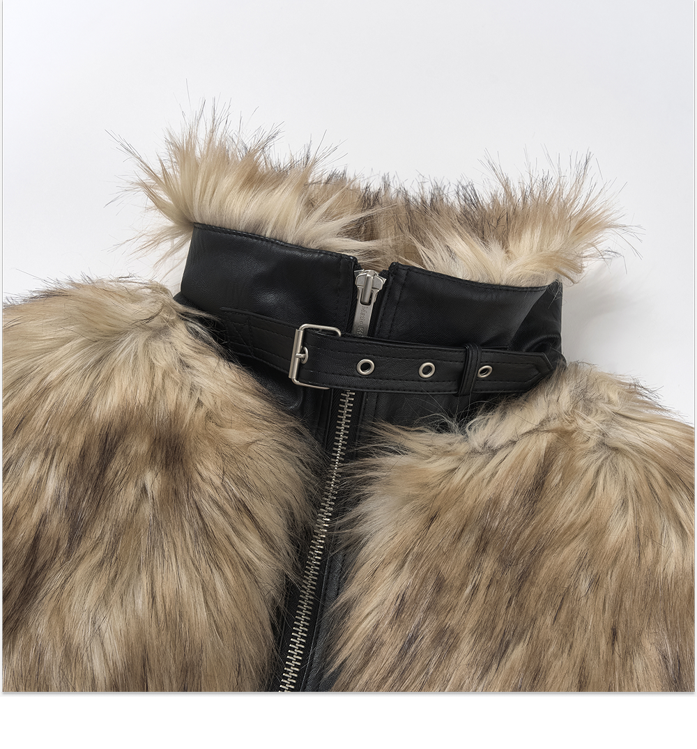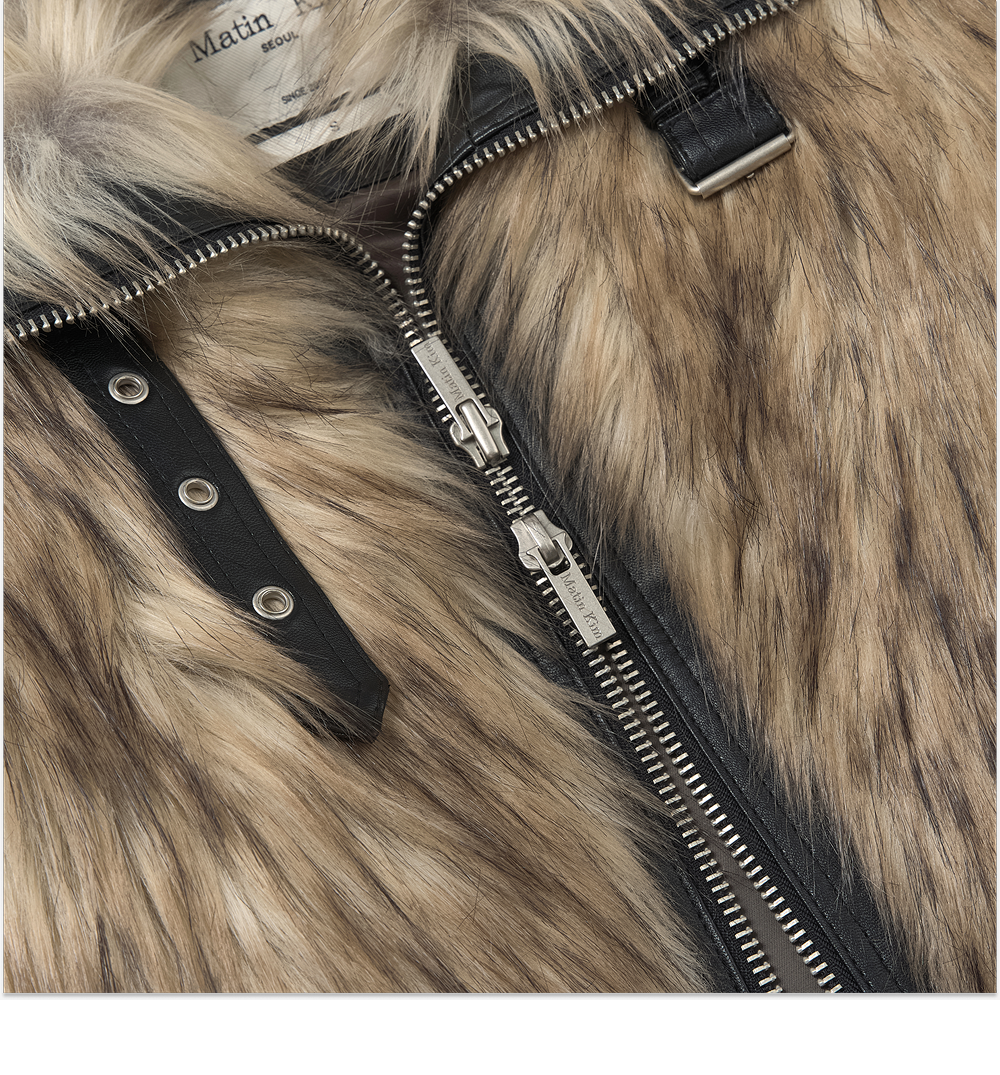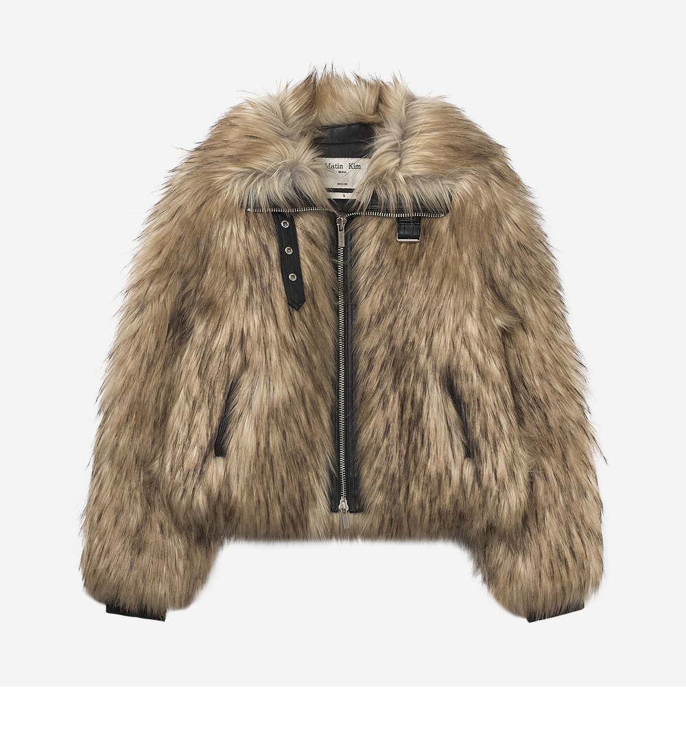 (W) Matin Kim Neck Buckle Crop Fur Jumper Beige