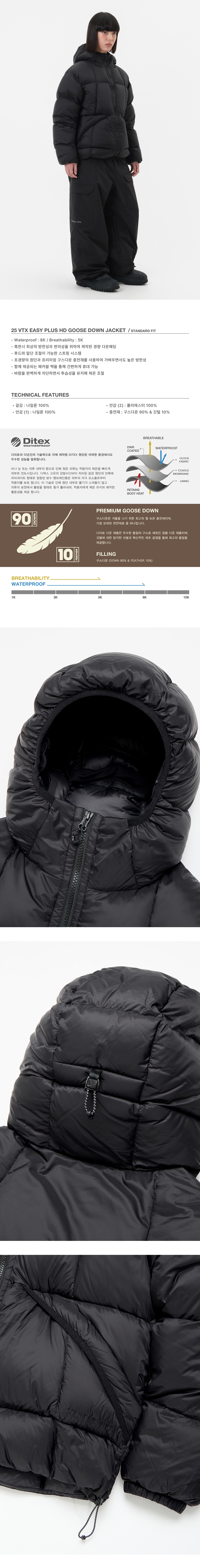 디미토 25 브이티엑스 이지 플러스 에이치디 구스 다운 자켓 블랙