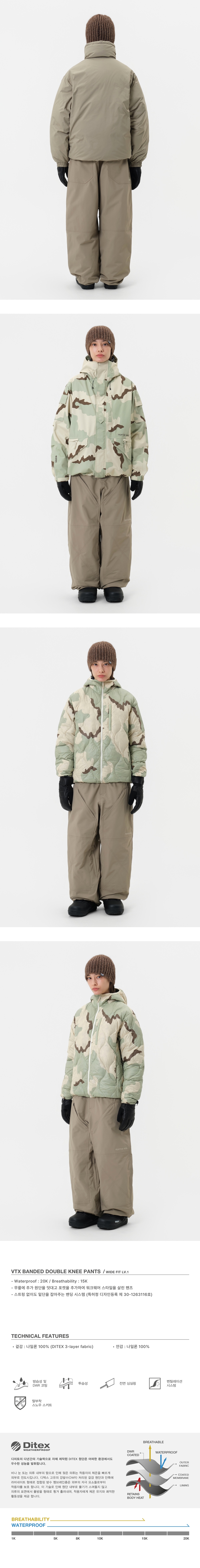 디미토 브이티엑스 밴디드 더블 니 팬츠 와이드 핏 레벨 1 딥 베이지