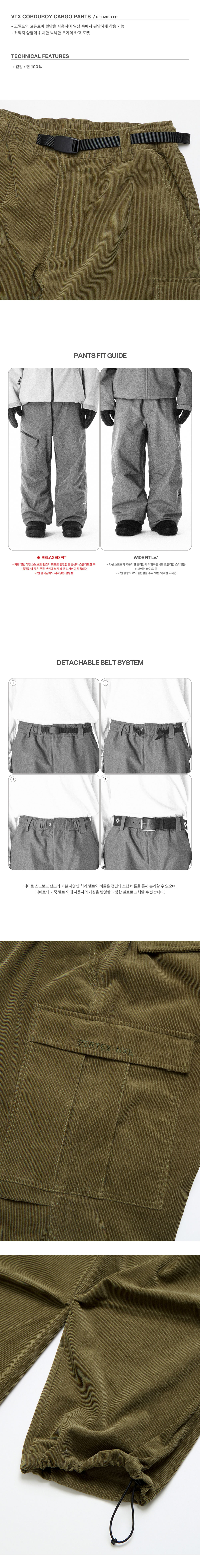 디미토 브이티엑스 코듀로이 카고 팬츠 릴렉스드 핏 카키
