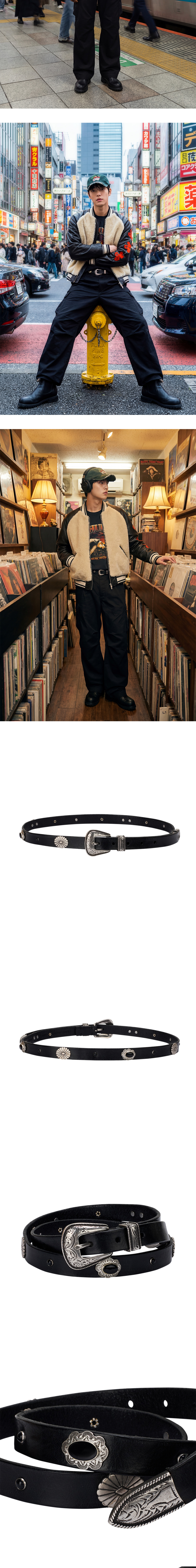 러스트 무드 55U 0039 벨트 23103 블랙입니다. - 웨스턴 스타일의 각인이 들어간 앤틱 실버 톤 버클 - 플라워·오벌 형태 장식이 스트랩 곳곳에 배열 - 빈티지한 실버 파츠와 매트한 레더의 조화 *천연가죽 염색 공정 특성상 제품 컬러가 사진 이미지와 다소 차이가 있을 수 있는 점 안내드립니다. ✧ AI로 제작한 콘텐츠가 포함되었습니다.