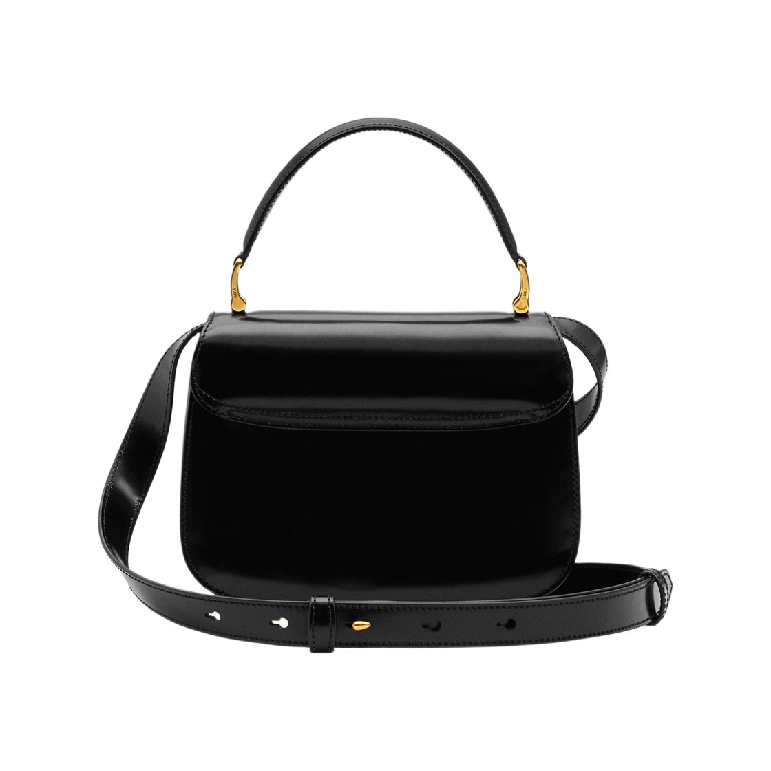 AMI de Coeur Glazed Leather Paris Top Handle Bag Black Gold