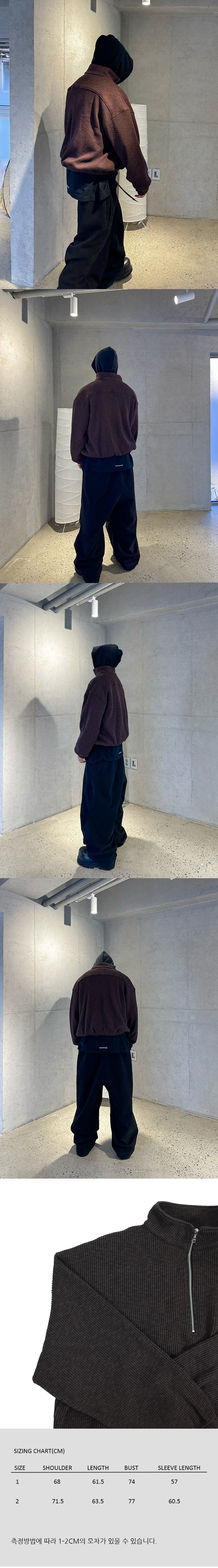 논노드 하프집 니트 브라운